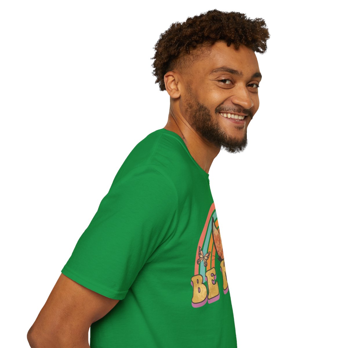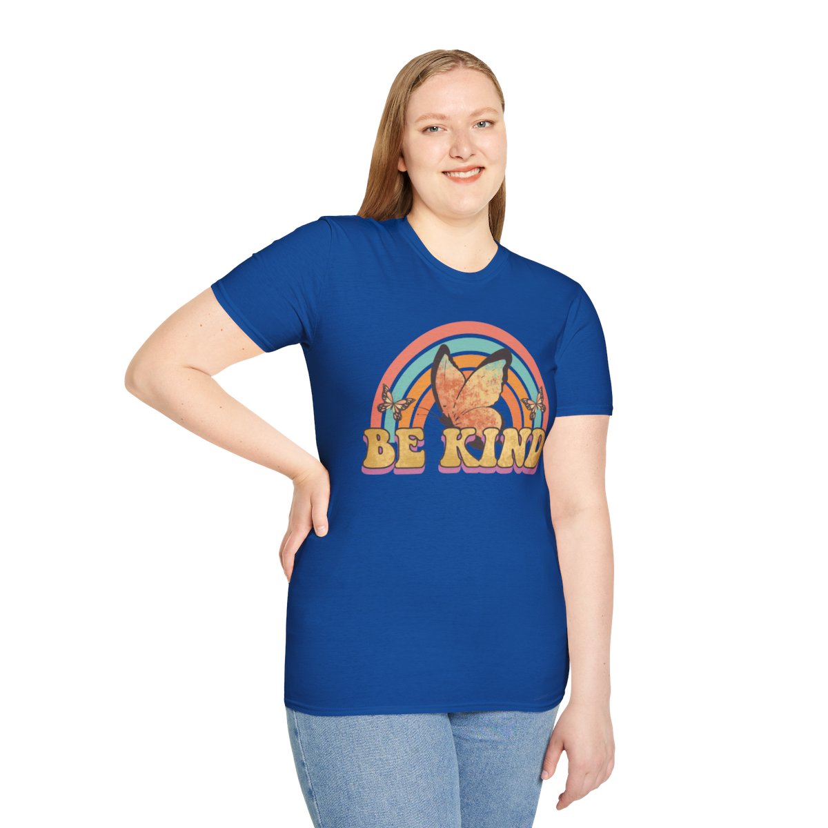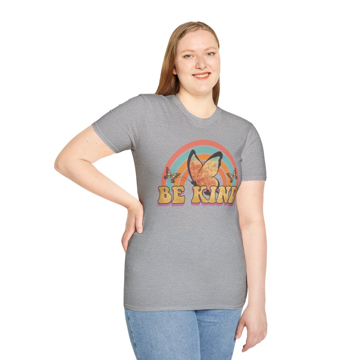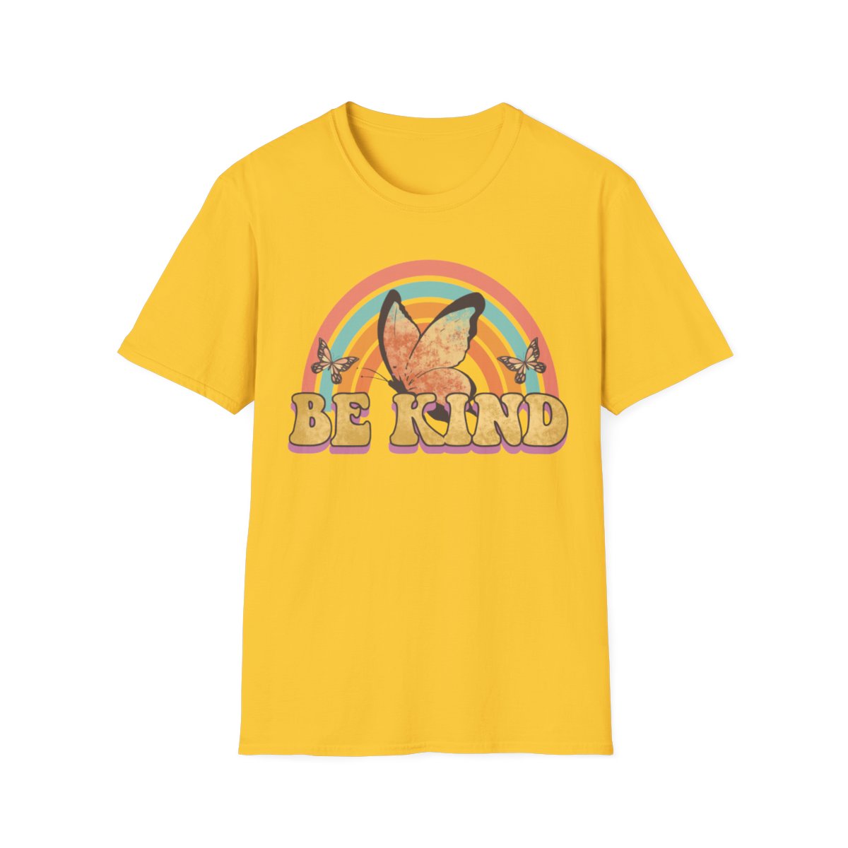 This unisex soft-style Be Kind (Adult) t-shirt puts a new spin on casual comfort. Made from very soft materials, this tee is 100% cotton for solid colors. Heather colors and sports grey include polyester. The shoulders have twill tape for improved durability. There are no side seams. The collar is made with ribbed knitting to prevent curling damage. .: Made with 100% ring-spun cotton, a lightweight fabric (4.5 oz/yd² (153 g/m²)), this unisex t-shirt feels like a bliss to wear all year round. .: The classic fit with the crew neckline deliver a clean, versatile style that can match any occasion, whether it’s formal or semi-formal. .: All shirts feature a pearlized, tear-away label for total wearing comfort. .: Made using ethically grown and harvested US cotton. Gildan is also a proud member of the US Cotton Trust Protocol ensuring ethical and sustainable means of production. This blank tee is certified by Oeko-Tex for safety and quality assurance. .: Fabric blends: Heather colors – 35% ring-spun cotton, 65% polyester; Sport Grey – 90% cotton, 10% polyester.