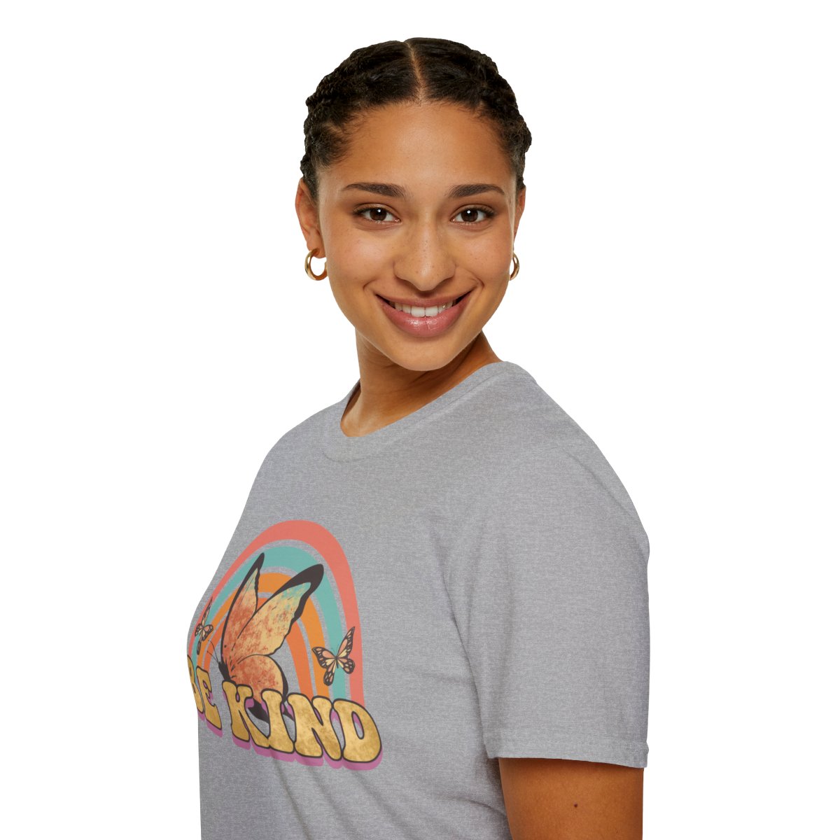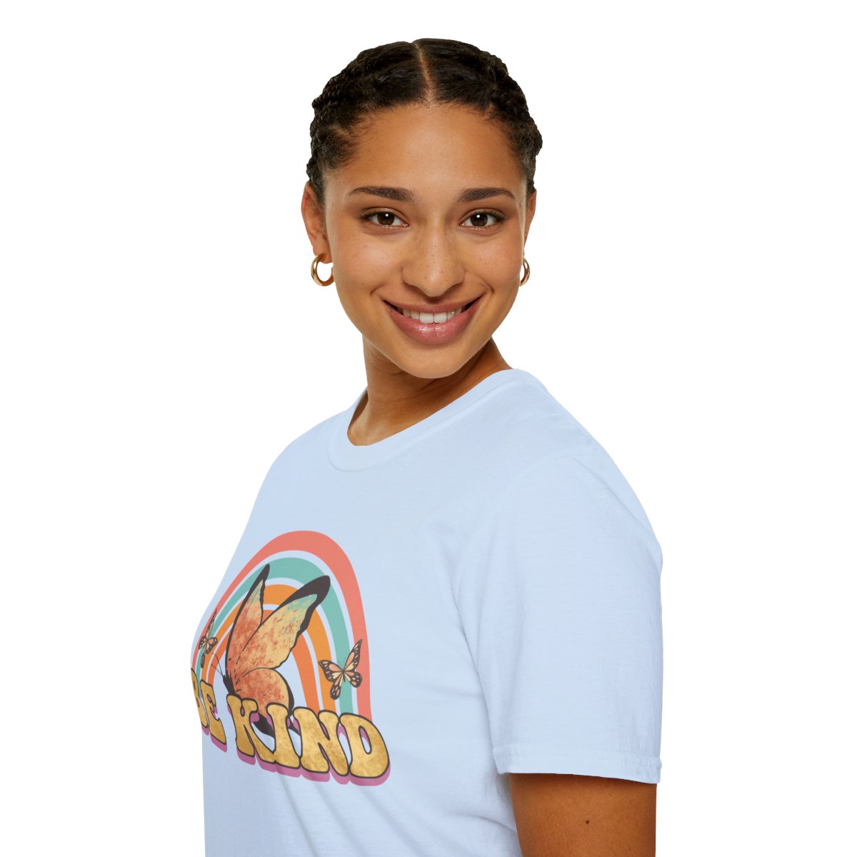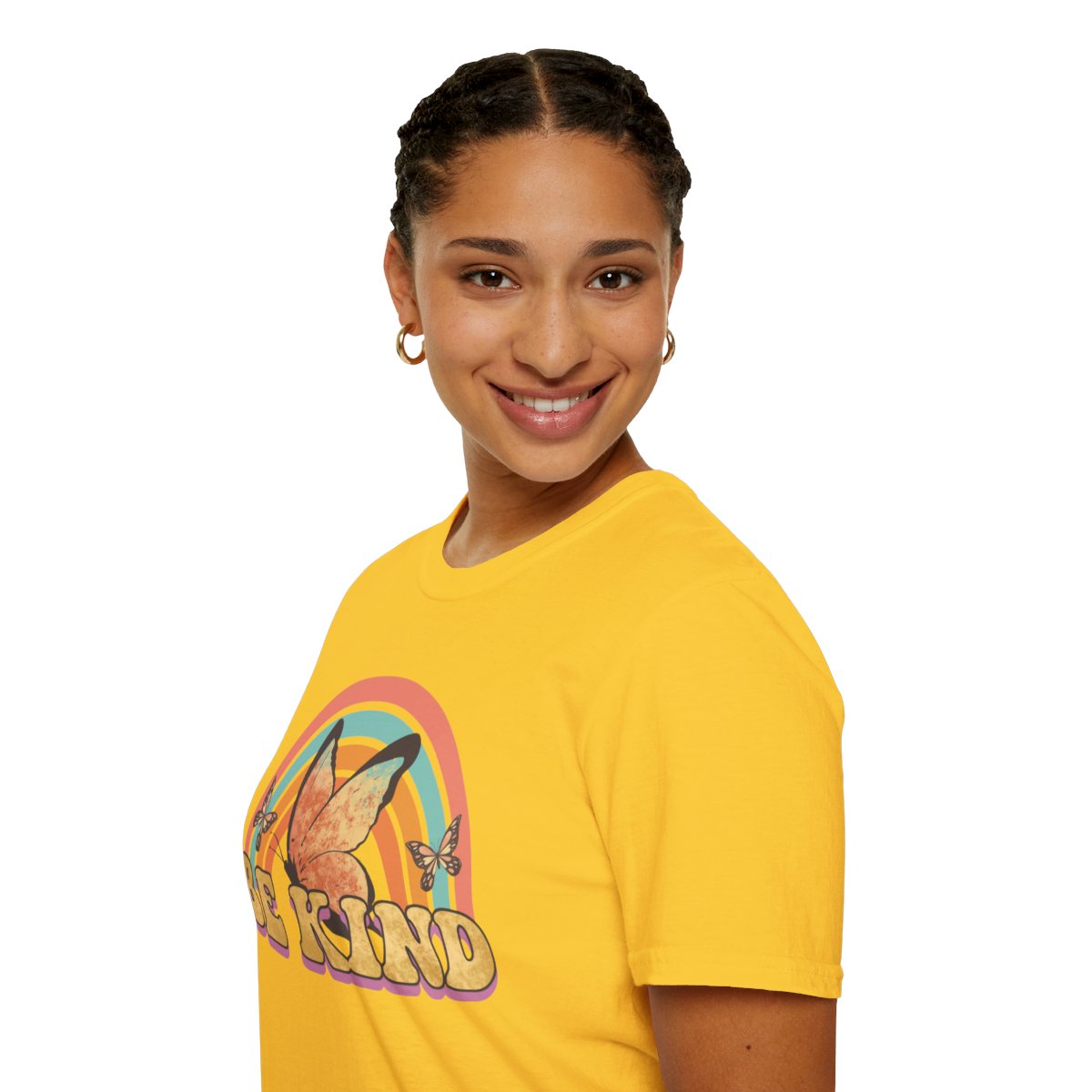 This unisex soft-style Be Kind (Adult) t-shirt puts a new spin on casual comfort. Made from very soft materials, this tee is 100% cotton for solid colors. Heather colors and sports grey include polyester. The shoulders have twill tape for improved durability. There are no side seams. The collar is made with ribbed knitting to prevent curling damage. .: Made with 100% ring-spun cotton, a lightweight fabric (4.5 oz/yd² (153 g/m²)), this unisex t-shirt feels like a bliss to wear all year round. .: The classic fit with the crew neckline deliver a clean, versatile style that can match any occasion, whether it’s formal or semi-formal. .: All shirts feature a pearlized, tear-away label for total wearing comfort. .: Made using ethically grown and harvested US cotton. Gildan is also a proud member of the US Cotton Trust Protocol ensuring ethical and sustainable means of production. This blank tee is certified by Oeko-Tex for safety and quality assurance. .: Fabric blends: Heather colors – 35% ring-spun cotton, 65% polyester; Sport Grey – 90% cotton, 10% polyester.