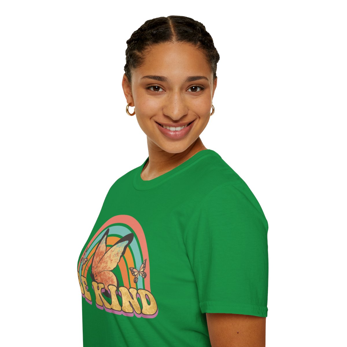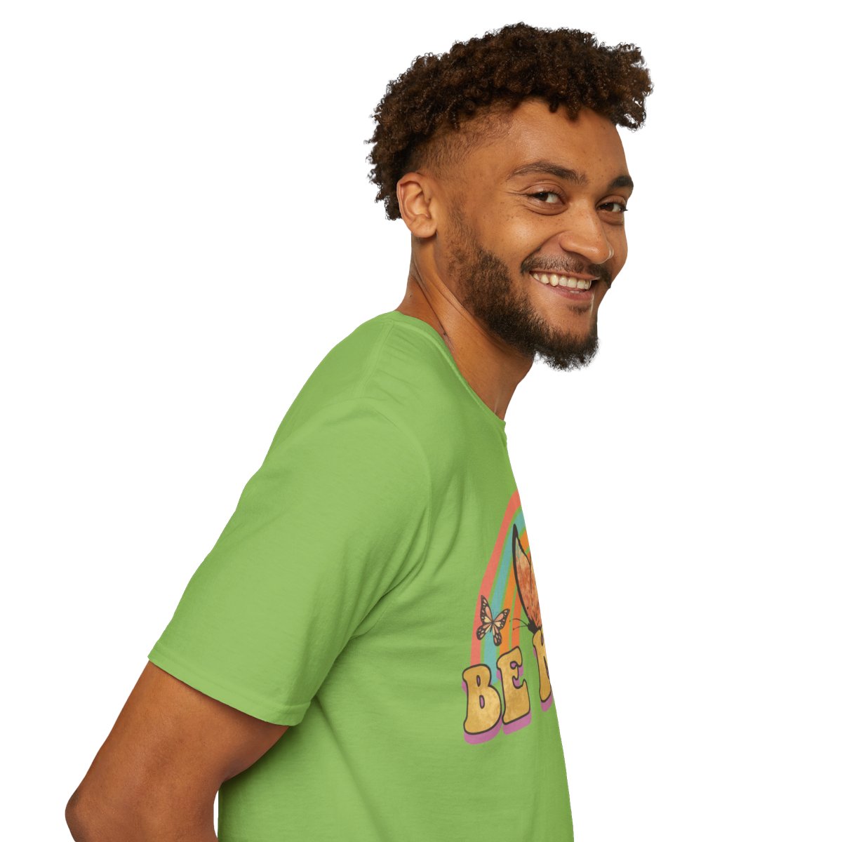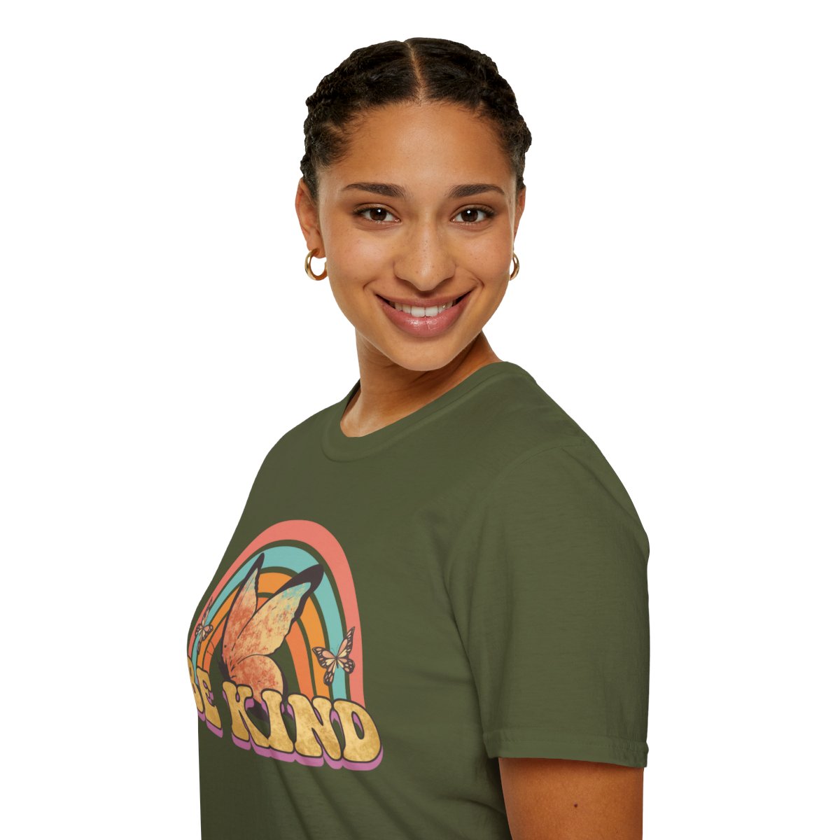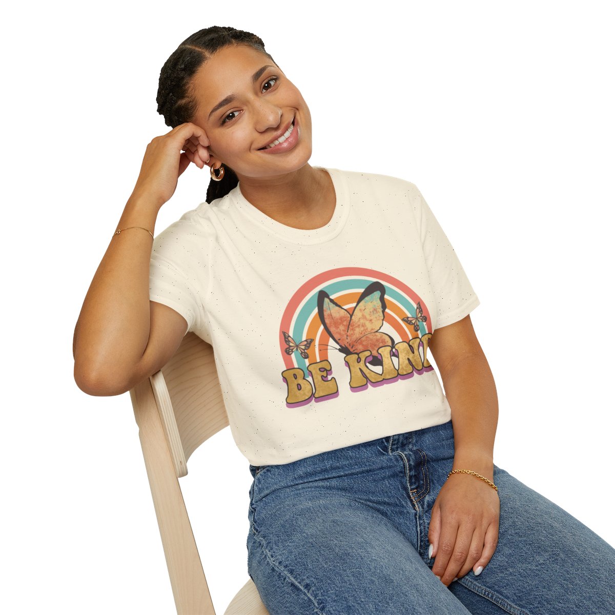 This unisex soft-style Be Kind (Adult) t-shirt puts a new spin on casual comfort. Made from very soft materials, this tee is 100% cotton for solid colors. Heather colors and sports grey include polyester. The shoulders have twill tape for improved durability. There are no side seams. The collar is made with ribbed knitting to prevent curling damage. .: Made with 100% ring-spun cotton, a lightweight fabric (4.5 oz/yd² (153 g/m²)), this unisex t-shirt feels like a bliss to wear all year round. .: The classic fit with the crew neckline deliver a clean, versatile style that can match any occasion, whether it’s formal or semi-formal. .: All shirts feature a pearlized, tear-away label for total wearing comfort. .: Made using ethically grown and harvested US cotton. Gildan is also a proud member of the US Cotton Trust Protocol ensuring ethical and sustainable means of production. This blank tee is certified by Oeko-Tex for safety and quality assurance. .: Fabric blends: Heather colors – 35% ring-spun cotton, 65% polyester; Sport Grey – 90% cotton, 10% polyester.